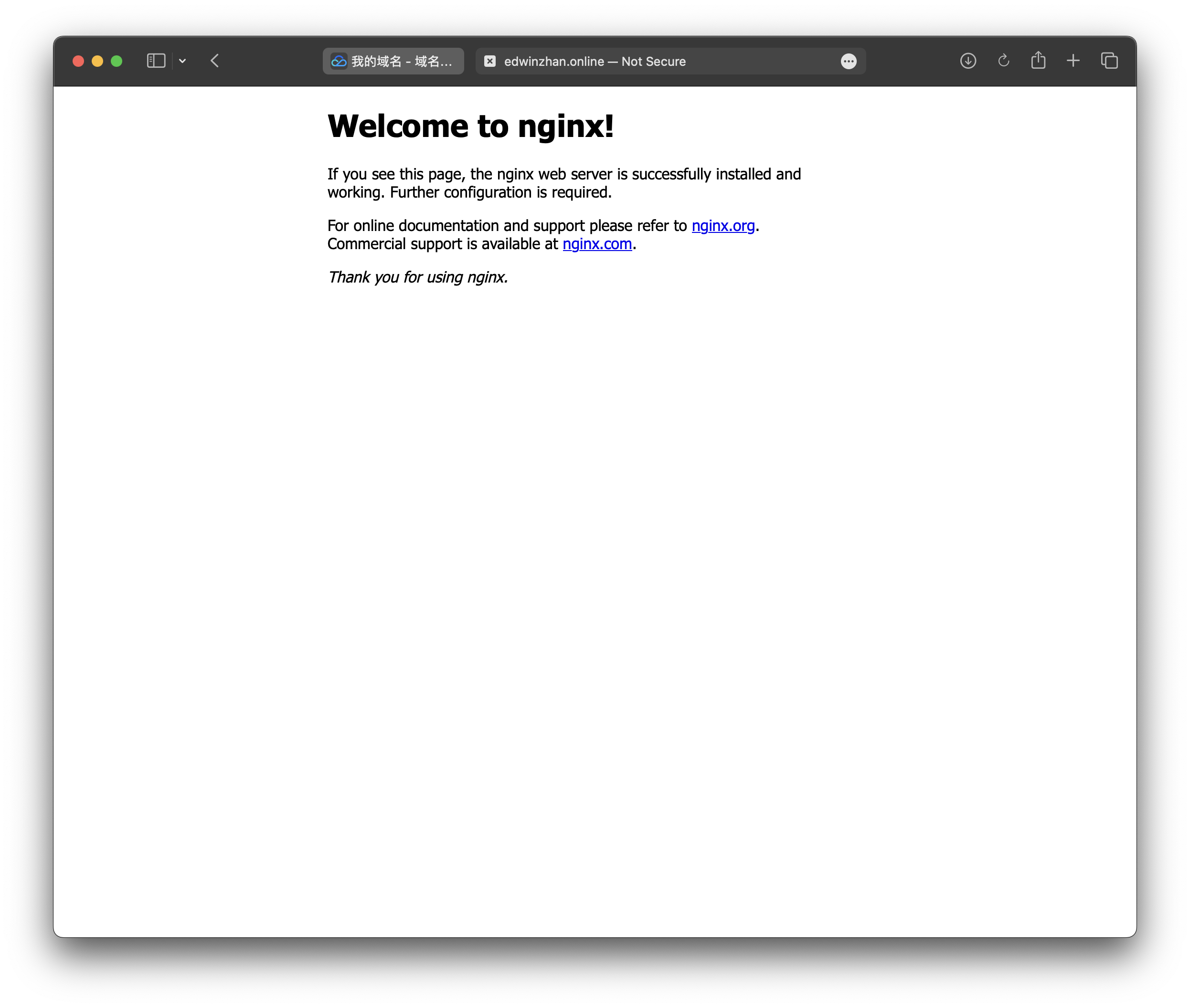 server_name edwinzhan.online www.edwinzhan.online; //add you own domain names. www.example.com or example.com