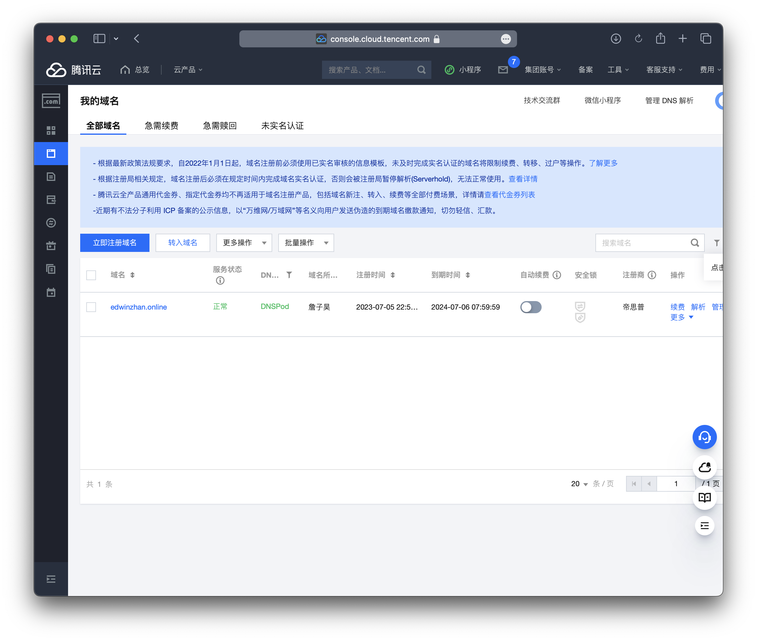 I can not teach you how to buy domain names in all websites, but you should have a control center of your domain name like this after you buy it. (TencentCloud):