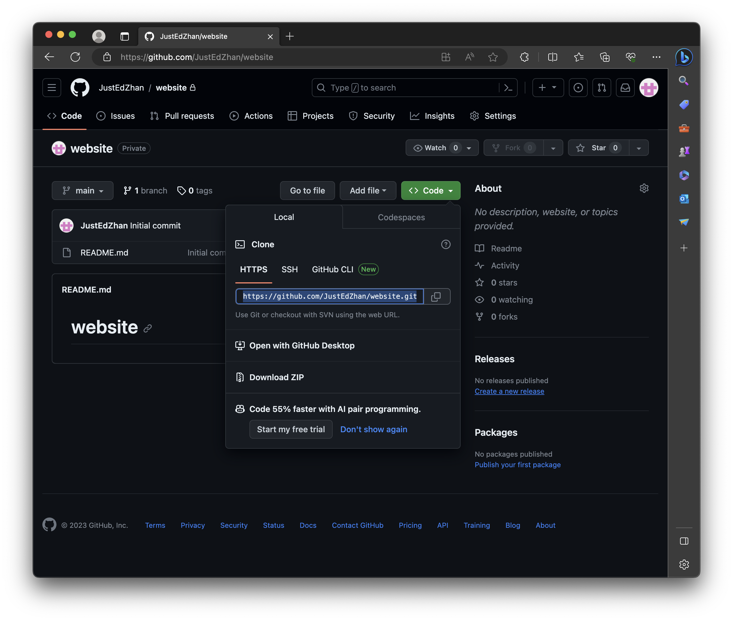 Congratulations! Your exploration of website setup is nearing its conclusion. Wasn't this process quite straightforward? This article will use GitHub and Git technologies to upload and update your website, showcasing your first webpage code on the homepage!